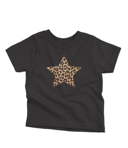 • White Baby Tee with a Cheetah Print Star Graphic